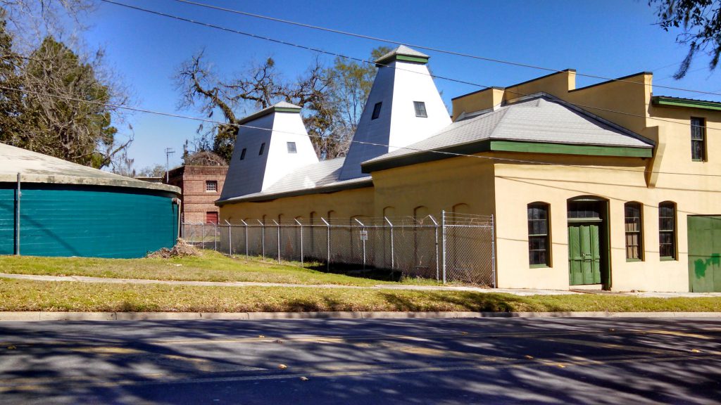 The Waterworks building, which is listed on the National Register of Historic Places, is located at the intersection of East Gaines Street and South Gadsden Street and consists of the main pump/well building, concrete cistern and three ancillary buildings.