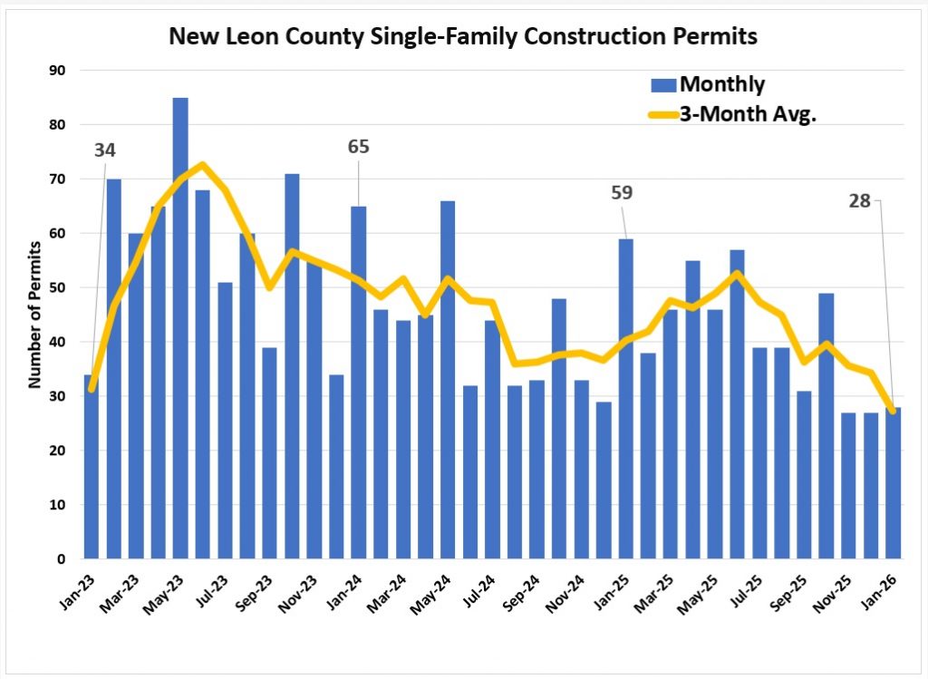 According to filings with Leon County and the City of Tallahassee, the number of single-family residential construction permits was down 52.5% in January 2026 when compared to January 2025. Details.