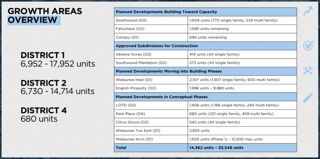 A central theme of the presentation was that growth in Leon County is not occurring evenly across the community. Instead, new housing construction is heavily concentrated in specific growth corridors, particularly in the northeast and southeast portions of the county. These areas include major planned developments in Welaunee area and surrounding residential projects, which are expected to add thousands of new housing units over time. Regional planning data shows that major developments alone could account for more than 7,000 new homes in the northeast sector, significantly influencing future student enrollment patterns.
